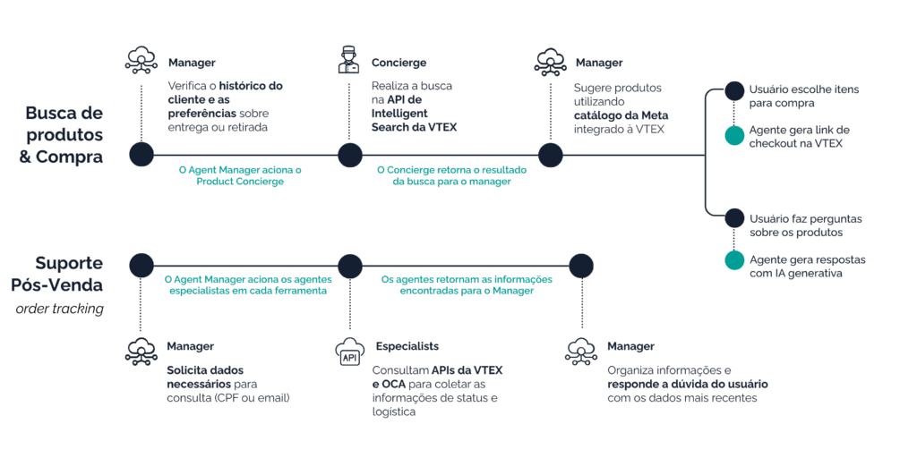 Na prática, o uso combina interações de pós-venda, que fortalecem a confiança e aumentam a fidelização, com atendimentos que apoiam o processo de compra.